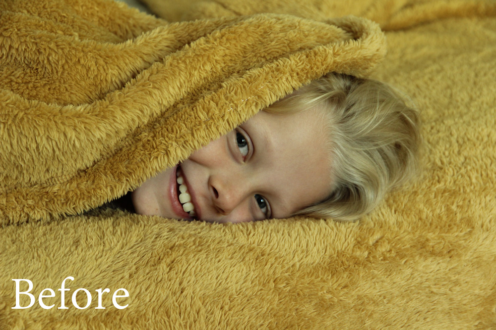 • Spot Therapeutic Brush Software to eradicate mini blemishes and a wisp of hair over the topic’s proper eye, and to melt the darkish hole on the high of the blanket